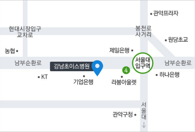 주소: 대한민국 지하 KR 서울특별시 관악구 지상 2,3,4,5층 강남초이스병원 1층.