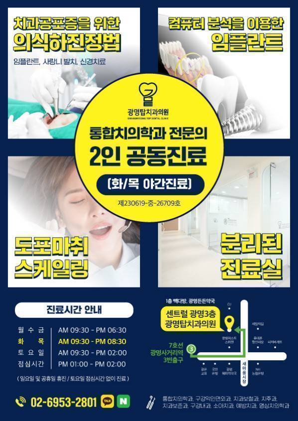 주소: 대한민국 경기도 광명시 광명로832번길 5 광명탑치과.