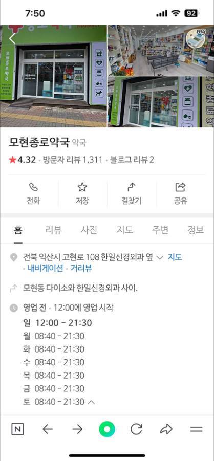주소: 대한민국 전북특별자치도 익산시 모현동1가 299-3 모현종로약국.