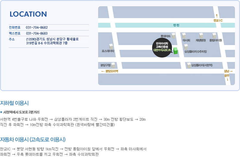 주소: 대한민국 성남시 (사단)한국수의학교육인증원.