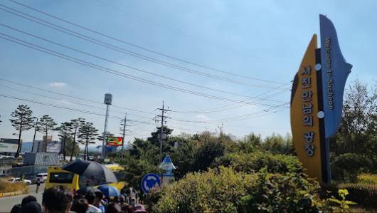 이 곳에 대해 리뷰를 보면, 사천에어쇼를 보기 위해 임시주차장에서 기다리게 되면서 주차장 협소과 대기시간이 상당하다는 평가가 있습니다. 셔틀버스 줄이 40분 이상 소요되고, 셔틀 버스 갈때 올때 장시간 대기가 요구됩니다. 에어쇼 갈때 돗자리 필수입니다.