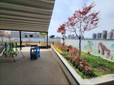 7층에는 옥상정원이 있는데 화단이 잘 가꾸어져 있고 그늘막에 바람이 살랑살랑 불어서 잠깐 나가서 구경하기 좋습니다.